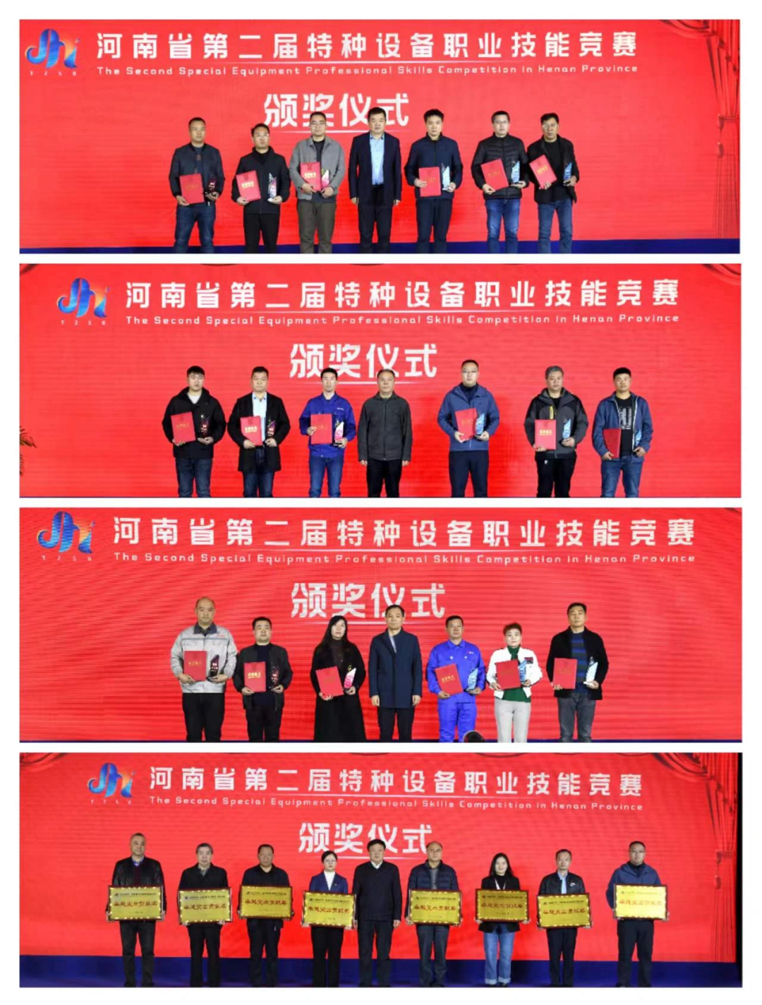 會上,河南省鍋爐壓力容器檢驗技術科學研究院院長、黨委書記馬江東馬院長為西繼迅達電梯頒發“優秀突出貢獻獎”,為參賽選手張亞東頒發電梯安裝維修工(自動扶梯)賽項的銀獎證書以及獎杯,為參賽選手張浩頒發電梯安裝維修工(自動扶梯)賽項的優勝獎證書。