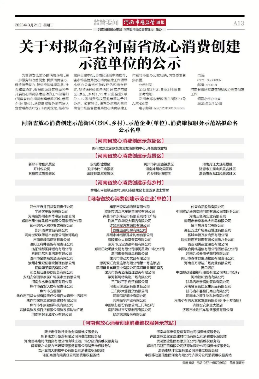 此次評審活動是根據(jù)市場監(jiān)管總局關(guān)于開展放心消費創(chuàng)建活動的工作部署和《河南省放心消費創(chuàng)建示范區(qū)域、示范企業(yè)(單位)、消費維權(quán)服務(wù)示范站認(rèn)定管理辦法(試行)》有關(guān)規(guī)定,經(jīng)市場主體自主申報,縣市級逐級審核推薦,省市場監(jiān)管局放心消費創(chuàng)建工作領(lǐng)導(dǎo)小組辦公室組織驗收評估和綜合評定。