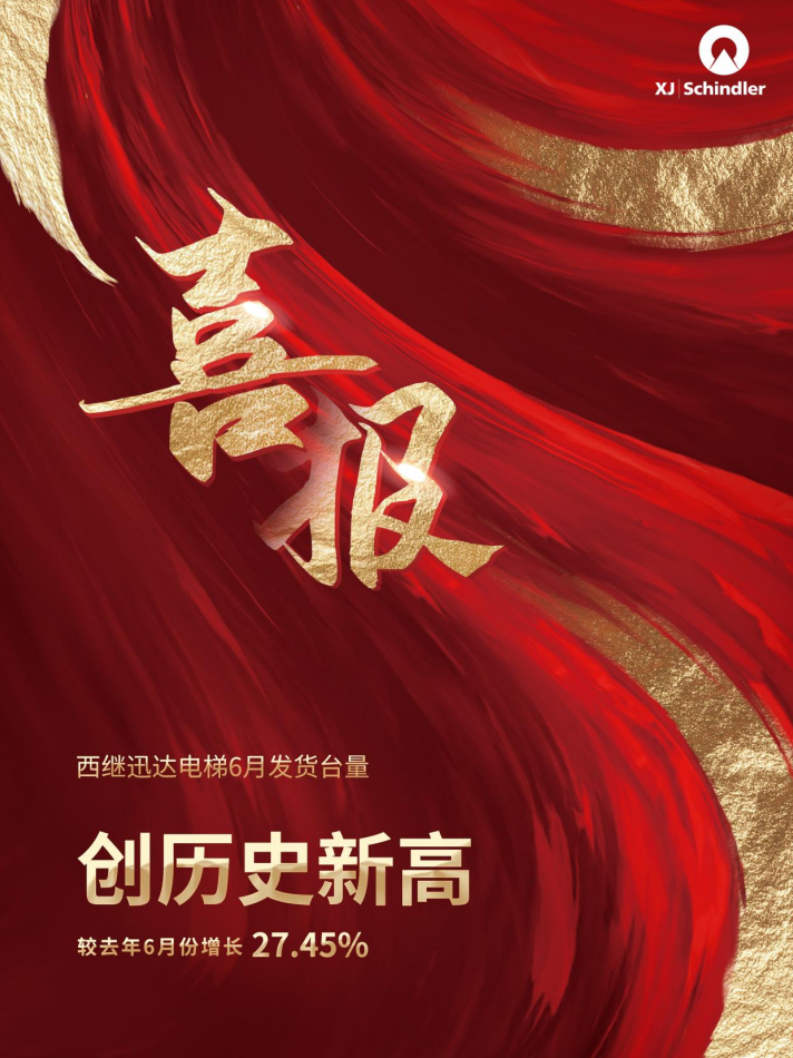 剛剛過(guò)去的6月,是西繼迅達(dá)發(fā)展歷程上激情四射的月份,不僅訂單量爆棚,發(fā)貨臺(tái)量也迎來(lái)了歷史性的突破,單月發(fā)貨臺(tái)量再創(chuàng)歷史新高,較去年同期增長(zhǎng)27.45%。