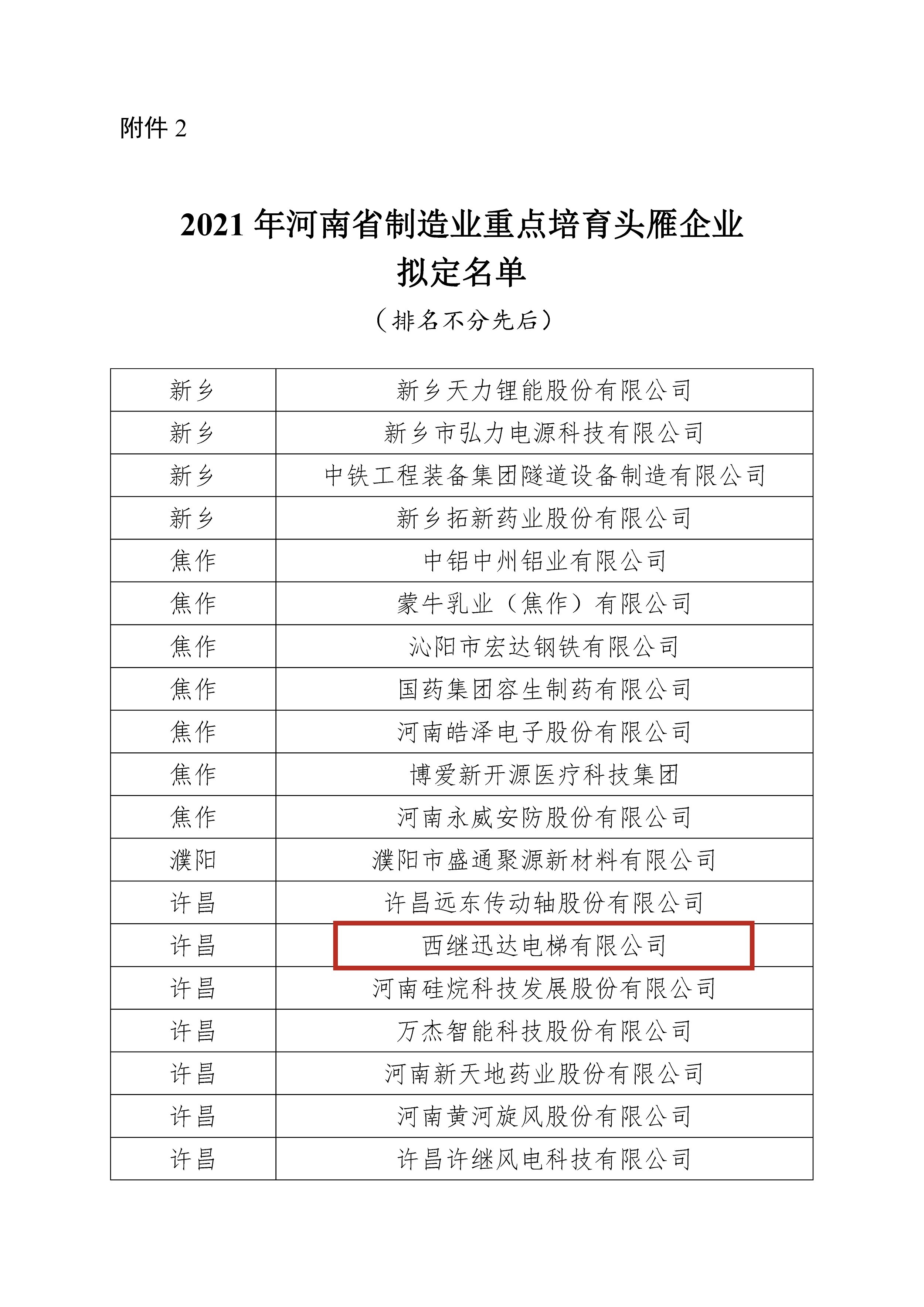 西繼迅達(dá)根據(jù)《河南省制造業(yè)頭雁企業(yè)綜合評(píng)價(jià)管理辦法(試行)》(豫工信規(guī)〔2021〕78號(hào))和《河南省工業(yè)和信息化廳關(guān)于開(kāi)展2021年河南省頭雁企業(yè)申報(bào)工作的通知》(豫工信辦規(guī)〔2021〕115號(hào))工作程序和有關(guān)要求,積極籌備申報(bào)資料,經(jīng)我市工信部門(mén)推薦、省工信廳組織專家進(jìn)行材料評(píng)審,公司憑借在各個(gè)方面的精彩表現(xiàn),被擬認(rèn)定為河南省制造業(yè)重點(diǎn)培育頭雁企業(yè)。 入選“河南省制造業(yè)重點(diǎn)培育頭雁企業(yè)”是對(duì)西繼迅達(dá)發(fā)展成果的充分認(rèn)可,公司將以此為契機(jī),充分發(fā)揮頭雁企業(yè)在融通發(fā)展中的帶動(dòng)作用,推動(dòng)公司高質(zhì)量發(fā)展,為我市經(jīng)濟(jì)發(fā)展貢獻(xiàn)力量。
