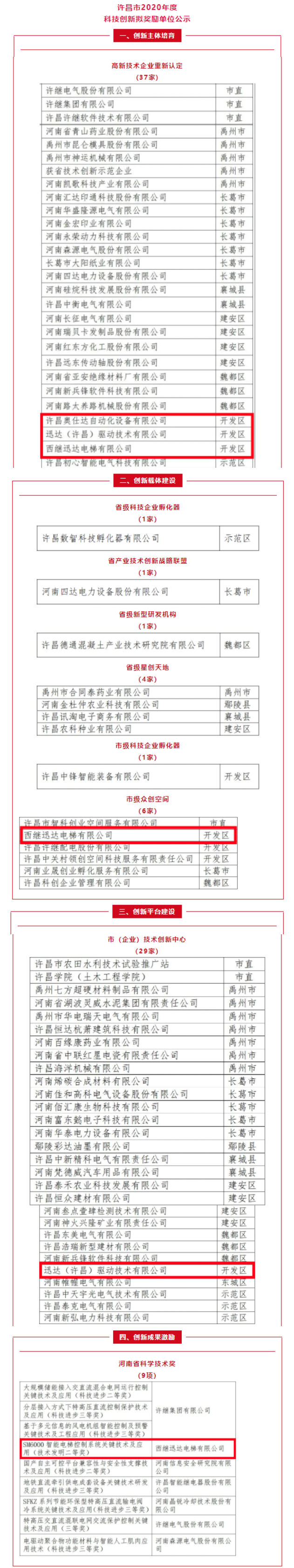 4月8日,許昌市人民政府網發布《許昌市人民政府關于擬表彰獎勵2020年度科技創新作出突出貢獻單位的公示》,西繼迅達電梯等企業擬受許昌市人民政府重獎!