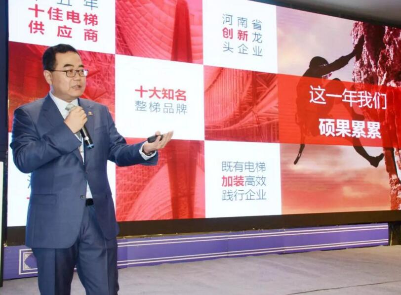 接著,西繼迅達總經理劉剛全面總結西繼迅達2017取得的豐碩成果,并詳細闡述公司新產品特點及未來的市場規模。他說,2017年公司經營業績和發貨臺量穩步增長,技術研發碩果累累,精品項目層出不窮。公司與迅達集團在海外市場開發、項目合作、大客戶資源共享、培訓及人才選拔系統導入等方面的深入合作,也取得了許多階段性成果。2018的市場形勢雖然不容樂觀,但是我們充滿必勝的信心,西繼迅達是各位經銷商朋友值得信賴的合作伙伴,可以為大家提供最具競爭力的產品方案,公司新推出的eMod改造梯、Addon加裝電梯、Parkbridge停車橋、Caplift復式電梯、eCloud電梯云系統,為各位經銷商朋友提供了更多更廣闊的發展空間。讓我們勇于挑戰,把根扎穩,發展新思路,拓展新市場,筑夢贏未來!