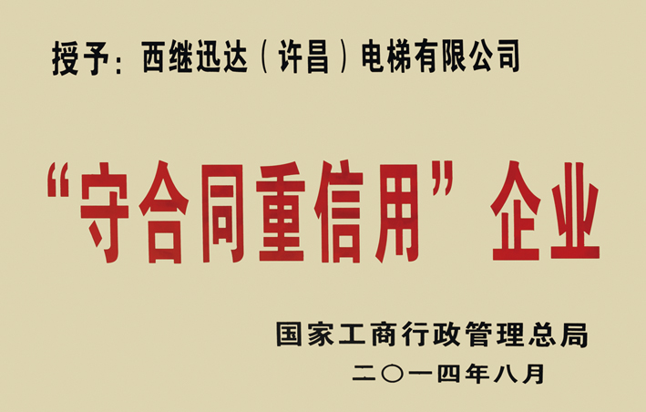 西繼迅達被國家工商總局授予“守合同重信用”企業(yè)