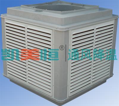當冷風機腔內產生負壓時,使機外的空氣通過濕簾進入風機內部,同時,濕簾上的水蒸發并帶走大量熱量,使得空氣溫度降低變成冷氣并送入車間內,這樣,可以形成對流,進而,達到制冷這一效果。