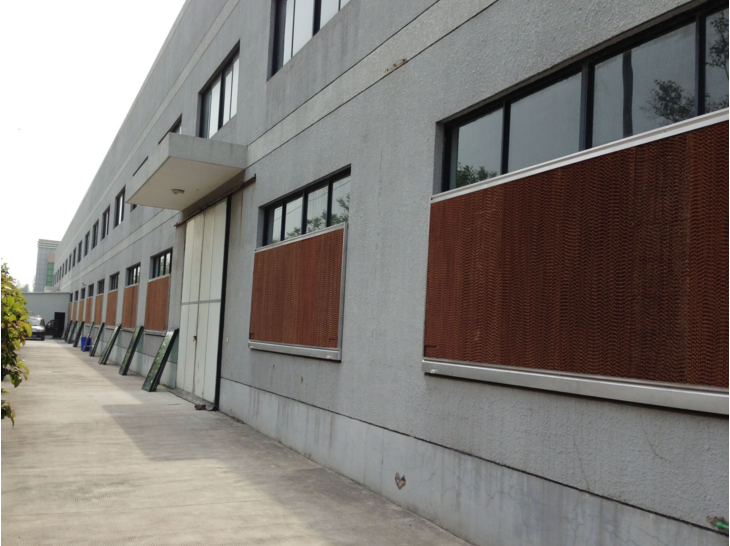 其降溫?fù)Q氣通風(fēng)效果,可非常有效的解決95-99%廠房高溫悶熱、空氣污濁的問題。可按用戶要求訂做各種不同尺寸的水簾和框架。通過負(fù)壓抽風(fēng),使室外與室內(nèi)空氣交換,將廠內(nèi)熱氣、污濁空氣完全排出廠外,自然流入新鮮空氣。