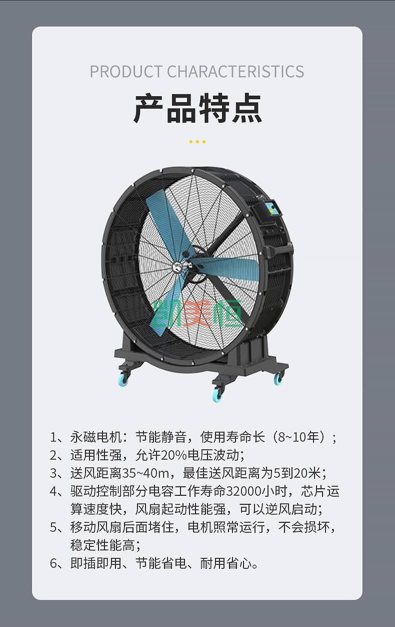 4. 安裝方便:永磁工業(yè)大風(fēng)扇結(jié)構(gòu)緊湊,安裝方便,無需復(fù)雜的接線和安裝工作,可快速投入使用。